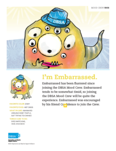 Embarrassed has been flustered since joining the DBSA Mood Crew®. Embarrassed tends to be somewhat timid, so being part of this group will be quite the experience. Embarrassed was encouraged by his friend Confident to come aboard, and he’s worried about what comes next.