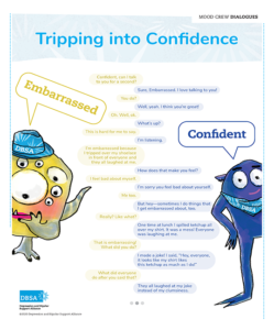 Embarrassed has been flustered since joining the DBSA Mood Crew®. Embarrassed tends to be somewhat timid, so being part of this group will be quite the experience. Embarrassed was encouraged by his friend Confident to come aboard, and he’s worried about what comes next.